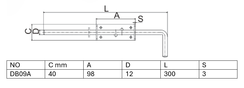- Length: 300mm drop bolt for secure locking of gates and doors.