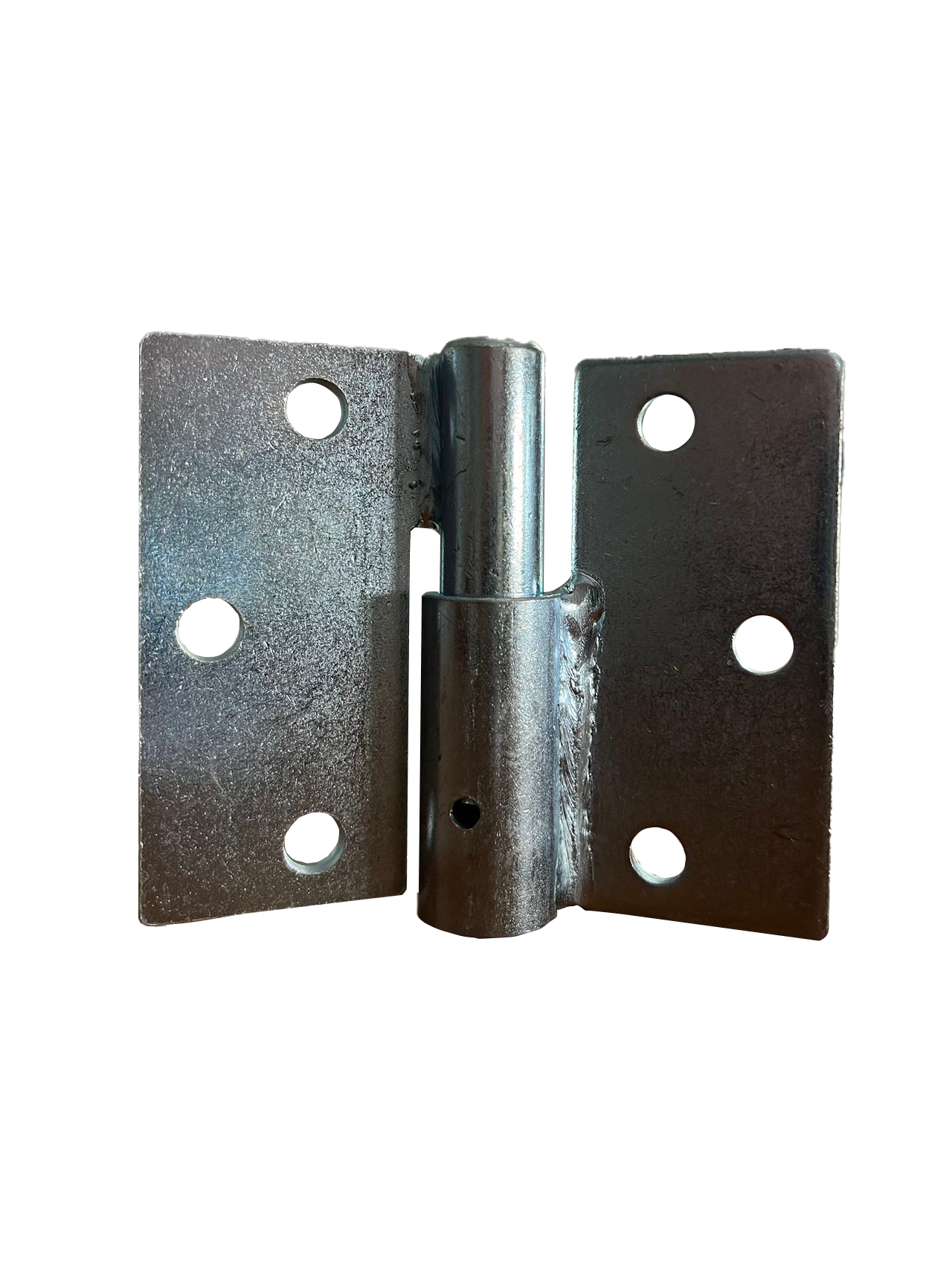 - Design: Two rectangular metal plates connected by a central pin, allowing the hinge to pivot.